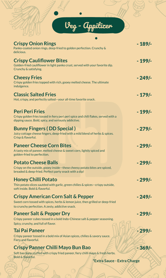A tasty mix of paneer, melted cheese & sweet corn, lightly spiced and golden-fried to perfection.